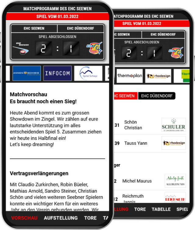 Aktuelle Spieldetails direkt auf das Smartphone: einfach, zeitgemäss, kostengünstig und automatisiert.