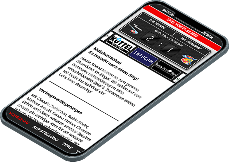 Aktuelle Spieldetails direkt auf das Smartphone: einfach, zeitgemäss, kostengünstig und automatisiert.